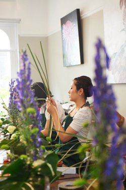 | 数多くの実技レッスン、アレンジ理論の講義、またフラワー業界で活躍するプロフェッショナルからのアドバイスなどで満載です。イギリス、ヨーロッパ各国、米国、オーストラリアなど、世界各国の方が当コースを受講しています。 |